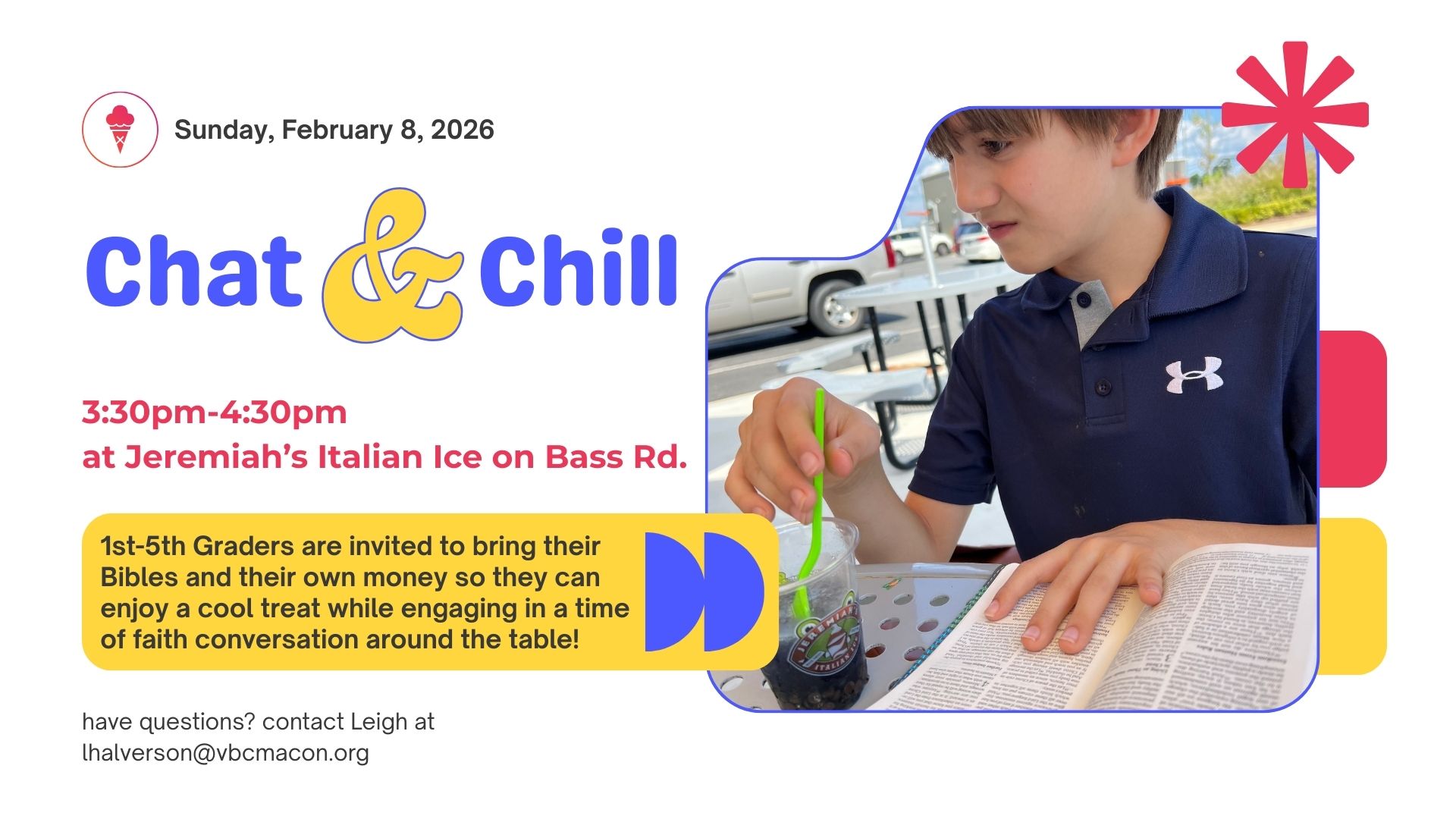 Youth Bible Study in the Youth Room, 2nd floor of the Gymnasium