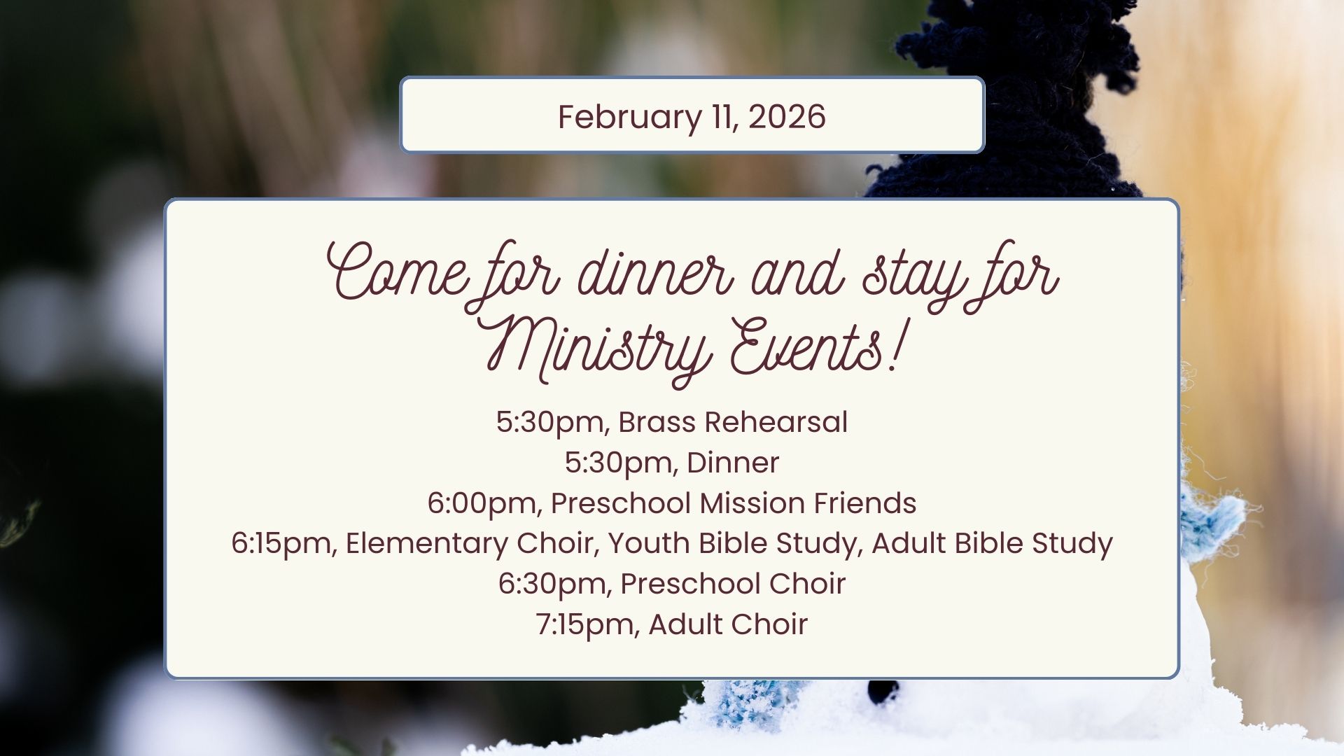 Sunday School begins at 9:35 am (Classes available for all ages)